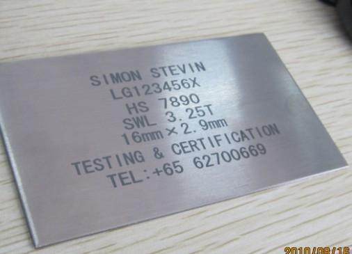通常是固定在产品上向用户提供厂家商标识别、品牌区分,产品参数铭记等信息的铭牌。铭牌又称标牌,铭牌主要用来记载生产厂家及额定工作情况下的一些技术数据,以供正确使用而不致损坏设备。制作铭牌的材料有金属类和非金属类之分别:金属类有锌合金、铜、铁、铝、 不锈钢等,但是主要用铝生产比较多,因为加工出来的铭牌效果相对要高档,经久耐用,不生锈。非金属类有塑料、亚克力有机板、PVC、PC、纸等。而无论适用何种材质,杭州睿龙激光刻字均可实现传统意义上所采用的丝印、油漆、喷绘的效果。