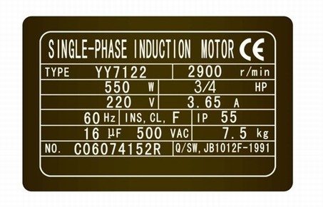 通常是固定在产品上向用户提供厂家商标识别、品牌区分,产品参数铭记等信息的铭牌。铭牌又称标牌,铭牌主要用来记载生产厂家及额定工作情况下的一些技术数据,以供正确使用而不致损坏设备。制作铭牌的材料有金属类和非金属类之分别:金属类有锌合金、铜、铁、铝、 不锈钢等,但是主要用铝生产比较多,因为加工出来的铭牌效果相对要高档,经久耐用,不生锈。非金属类有塑料、亚克力有机板、PVC、PC、纸等。而无论适用何种材质,杭州睿龙激光刻字均可实现传统意义上所采用的丝印、油漆、喷绘的效果。